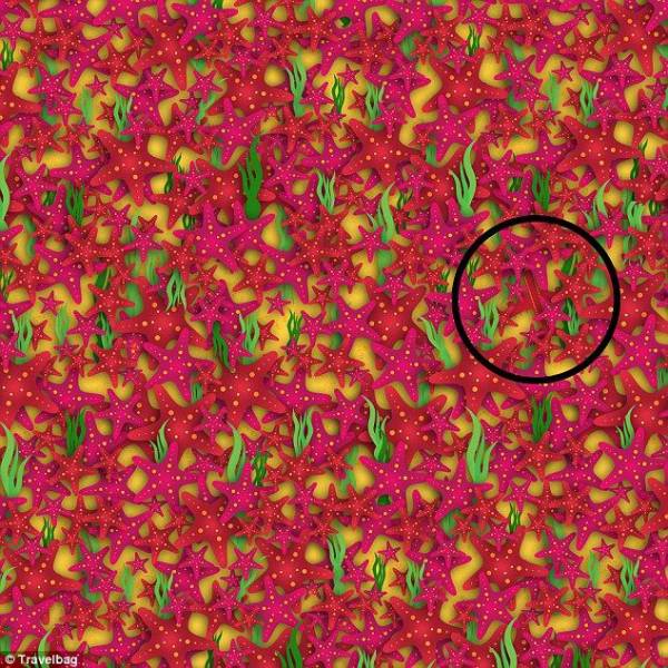 カラフルな画像ですよね。たくさんのヒトデがいます。実はこの中に飛行機が隠れています。問題は隠れている飛行機を見つけ出すというもの。飛行機は完全にカモフラージュされています。どうですか、見つかりましたか?